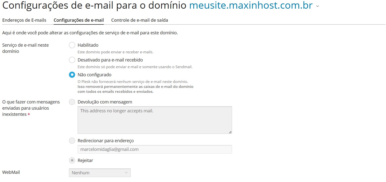 Isso garante que todos os e-mails sejam entregues diretamente no Gmail, sem passar pelo Plesk.