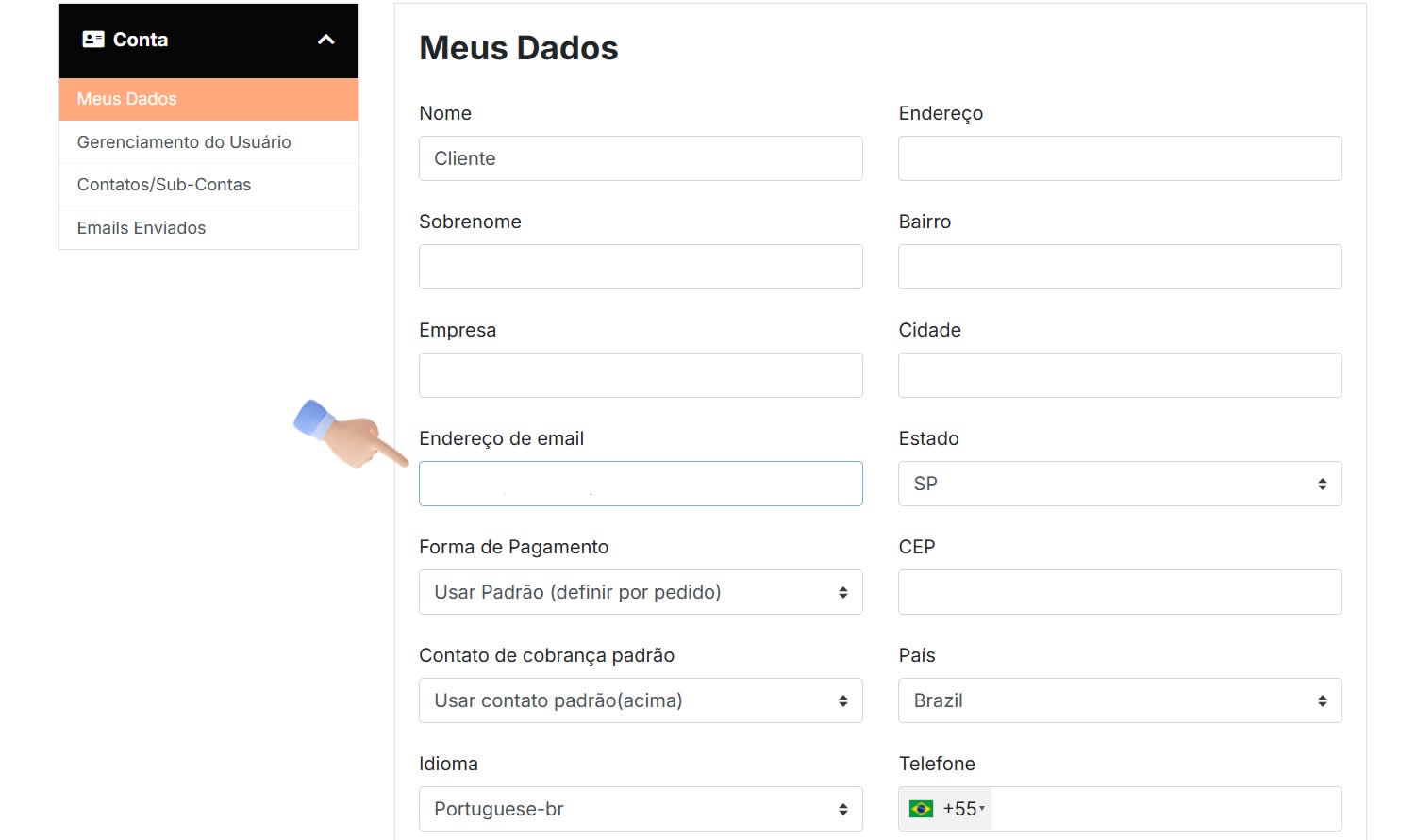 Para alterar seu e-mail de cadastro, primeiro acesse sua área do cliente.